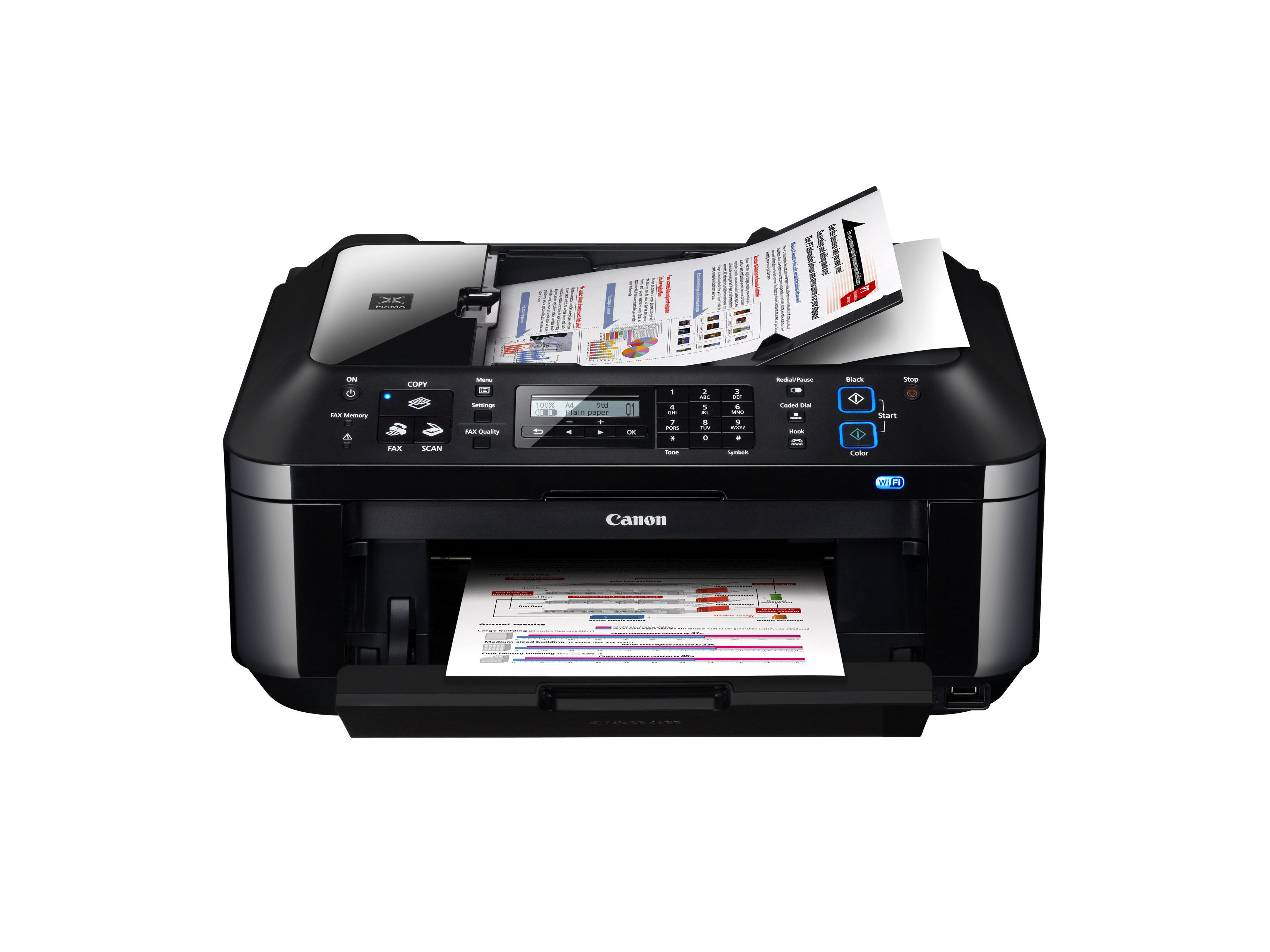 Este multifuncional dispone de funciones y tecnologías como alimentador automático de documentos (ADF), Fax con memoria aproximada de 50 hojas y modo de escaneo automático, que ayudarán a realizar las tareas y proyectos de forma rápida y sencilla.